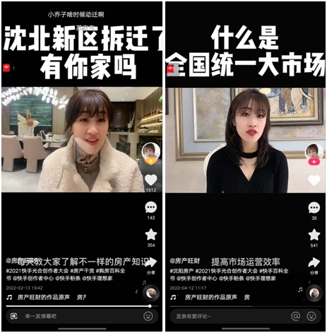 有客源、有房源,在快手的幫助下,“小雨們”的房產(chǎn)事業(yè)形成了一個(gè)良性閉環(huán)。同時(shí),快手平臺(tái)對(duì)于房地產(chǎn)主播的運(yùn)營規(guī)則也在倒逼著諸如沈陽房產(chǎn)市場(chǎng)正規(guī)化。
