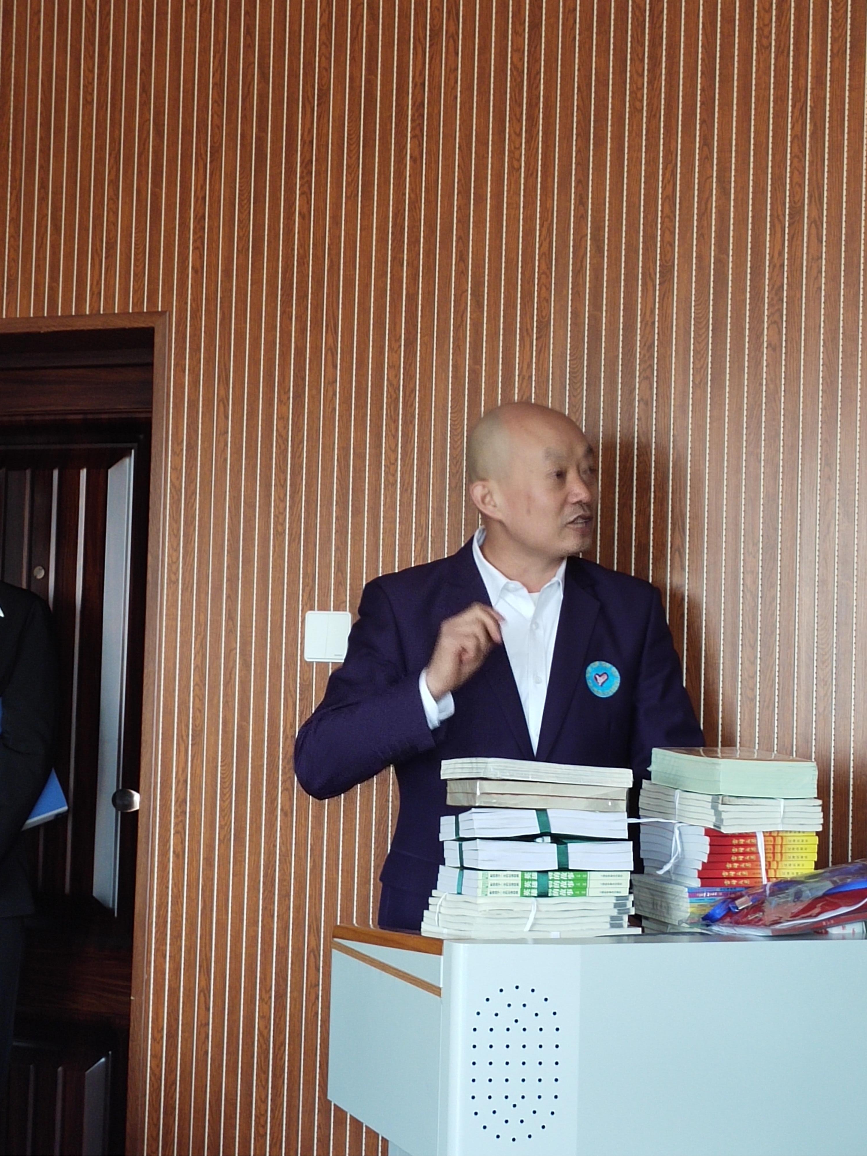 蓮花中心校校長孫洪斌在捐書儀式上做了誠摯的發(fā)言,承諾會好好利用這些書,給孩子們營造一個良好的讀書氛圍,讓孩子們真正體會到讀書的重要性以及讀書所帶來的益處。