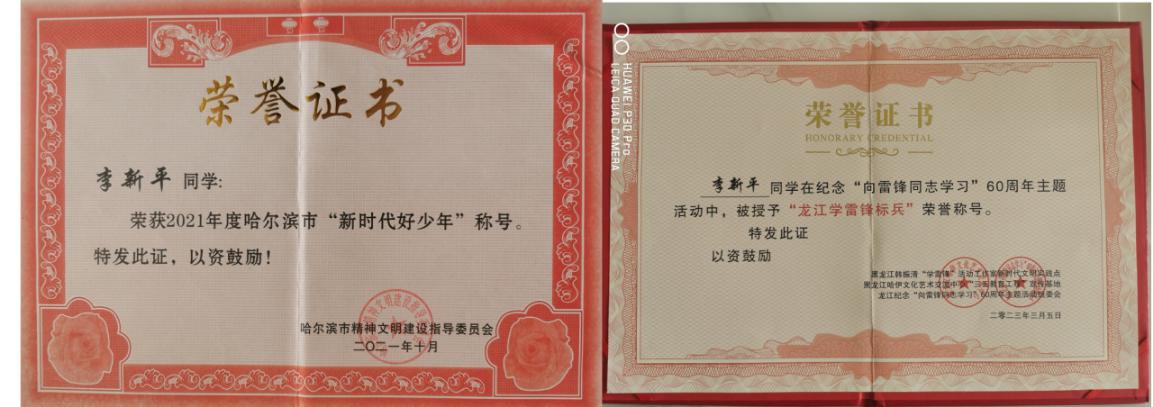李新平同學就讀于呼蘭區(qū)建國小學五年五班,他勤奮好學、品學兼優(yōu)、樂觀向上、自強自立。從一年級開始就擔任班長職務,先后多次被評為三好學生、優(yōu)秀學生干部、優(yōu)秀少先隊員,榮獲2021年度哈爾濱市“新時代好少年”稱號、榮獲2021年第三屆龍江好少年活動“龍江愛心大使”和“城市形象大使”,2022年被黑龍江省積善之家?guī)头鲋行那嗌倌曛驹刚呖傟犑谟琛肮孢_人”稱號,2023年在紀念“向雷鋒同志學習”60周年主題活動中被韓振清學雷鋒創(chuàng)新工作室授予“龍江學雷鋒標兵”榮譽稱號。在多類體育運動競賽活動中獲得等級證書及榮譽稱號,出色的表現(xiàn)和真誠的付出,贏得了大家的信任、同學們的信賴、家長們的喜愛。