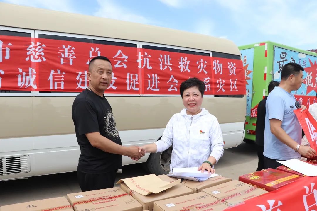 8月16日,黑龍江省誠信建設促進會與哈爾濱市慈善總會到五常市紅旗滿族鄉(xiāng)前蘭旗村,深入救災一線慰問捐贈,現場向受災村屯捐贈消毒用品、家用電器、飲用水、生活物資等災后必需品,彰顯社會組織責任擔當。參加現場慰問活動的有哈爾濱市慈善總會陳光瑩秘書長,省社會保障行業(yè)協(xié)會聯合黨委書記劉歆,省社會保障行業(yè)協(xié)會聯合黨委副書記、省誠信建設促進會會長張波,省誠促會黨支部副書記李德山,省誠促會副會長兼秘書長李蘭,省誠促會副會長于海波,省誠促會副會長、哈爾濱市南十八食品有限公司董事長胡秋荔,省誠促會副會長、哈爾濱聯興肉制品有限公司董事長劉忠慶,省誠促會副會長、花卉誠信專委會主任閆艷茹,哈投物業(yè)有限責任公司、哈爾濱樾景物業(yè)管理有限公司、哈爾濱市最泉商貿有限公司等副會長單位及社會愛心人士。
