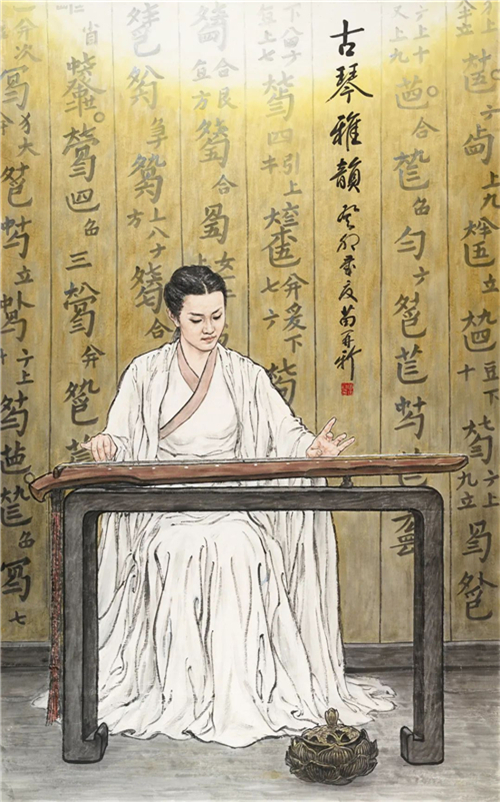苗再新 古琴雅韻 230cm×143cm 國(guó)畫