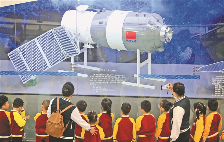 4月24日是第九個(gè)“中國(guó)航天日”。哈爾濱工業(yè)大學(xué)航天館里,前來(lái)參觀的群眾絡(luò)繹不絕。哈工大附中的幾十位同學(xué)興致勃勃地參觀了室外航天主題文化園,在長(zhǎng)征一號(hào)運(yùn)載火箭、東風(fēng)二號(hào)地對(duì)地彈道導(dǎo)彈、資源號(hào)返回艙等大型實(shí)物展品前長(zhǎng)久駐足觀看。在航天館內(nèi),他們還認(rèn)真聆聽了多位教授的航天知識(shí)講座,不斷為精彩的內(nèi)容鼓掌。
