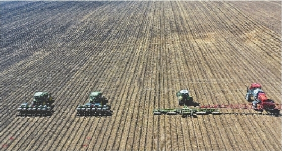近日,在尖山農(nóng)場(chǎng)第一管理區(qū)北14號(hào)大豆地,4臺(tái)大型機(jī)車(chē)整裝待發(fā),充分利用晴好天氣展開(kāi)播種作業(yè),標(biāo)志著尖山農(nóng)場(chǎng)播種工作全面展開(kāi)。