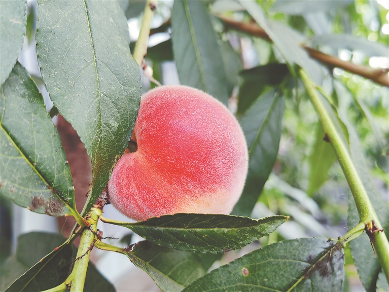 6月18日,在北大荒集團(tuán)寧安農(nóng)場有限公司鄉(xiāng)村振興產(chǎn)業(yè)園南果北種示范種植基地,一棵棵傲然挺立的桃樹上綴滿的毛桃粉中透紅、果香四溢、成熟待采。