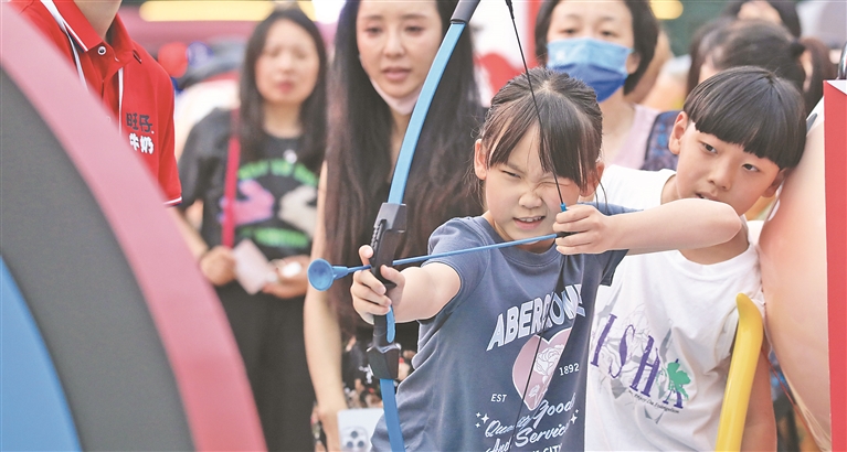隨著全國各地中小學暑期的來臨,時下,位于哈爾濱市道里區(qū)的建筑藝術廣場上,親子游的家庭明顯增多。除了旅拍,孩子們還熱衷于喂鴿子、坐木馬、射箭、乘小火車,暢享“爾濱”夏日清涼。