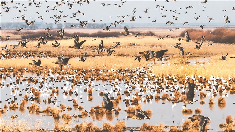 本報訊(馬淑芬 記者潘宏宇)6日一早,剛下過第一場雪的寶清縣,數(shù)千只東方白鸛在此“集結”,飛翔在湛藍的天空和白雪覆蓋的大地之上,勾勒出一幅美麗的圖景,為冬日的寶清增添了一抹別樣的生機與活力。