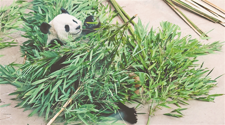 尤其是“佑佑”,曬著午后暖陽,坐在室外的雪地里,大口“狂炫”竹葉,這一口吃夠了,就尋覓著從雪里刨出來一根竹筍,秒變“剝筍小哥”。“佑佑”還時不時停下來,盯著人群定格幾秒,仿佛是專門為游客拍照擺好姿勢,令不少南方小伙伴感嘆“開了眼界”。