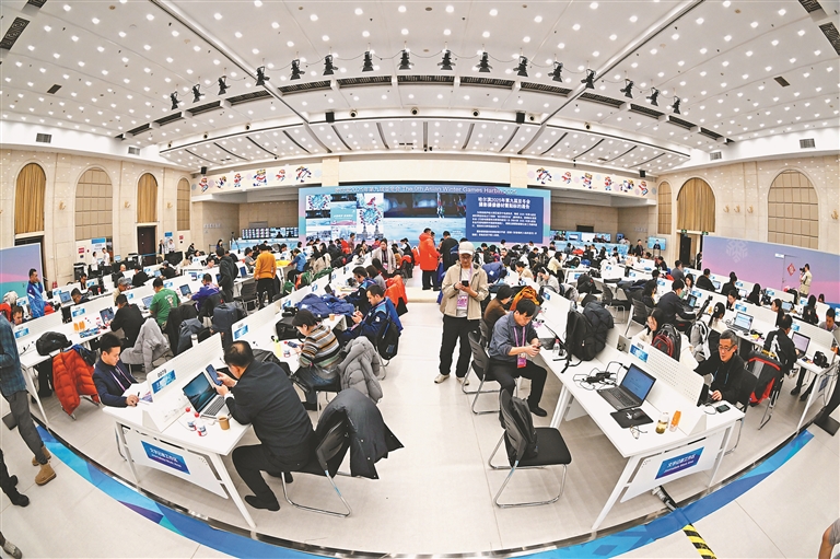 第九屆亞冬會(huì)主媒體中心(MPC)分為主新聞中心和國際廣播中心兩個(gè)部分,為注冊(cè)媒體記者和轉(zhuǎn)播商的工作提供保障服務(wù)。亞冬會(huì)開幕后,MPC里就坐滿了來哈爾濱采訪的各國記者,他們?cè)谶@里寫稿,向各地發(fā)送有關(guān)亞冬會(huì)的最新信息和比賽結(jié)果,他們也在這里相互交流,成為異國朋友。