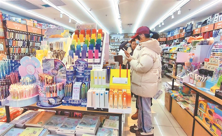 19日,哈爾濱市道里區(qū)一處大型批發(fā)市場(chǎng),許多家長(zhǎng)帶著孩子前來(lái)選購(gòu)文具。