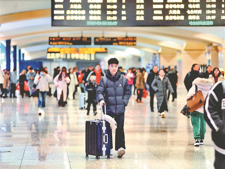 26日,哈爾濱火車站出站口,許多大學(xué)生推著行李箱,走出車站,返回學(xué)校,開啟新學(xué)期的學(xué)習(xí)生活。