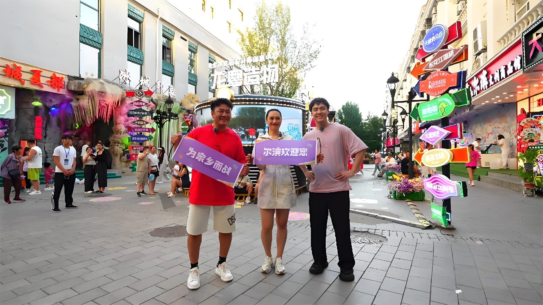 8月6日的哈爾濱中央大街,索契冬奧會(huì)速滑冠軍張虹邊走邊介紹紅腸、乳酪、黑豆?jié){等東北特產(chǎn),東北文旅達(dá)人“左右哥”和游戲解說宇航現(xiàn)場(chǎng)介紹了馬迭爾雪糕的N種吃法……這些看似不相關(guān)的元素,因?yàn)橐粋€(gè)共同的主題"為家鄉(xiāng)而戰(zhàn)"而產(chǎn)生了奇妙的化學(xué)反應(yīng)。