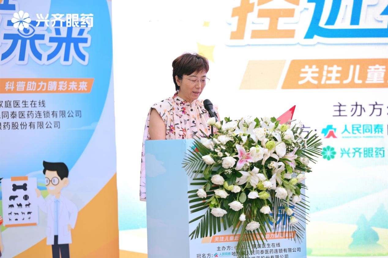 哈爾濱人民同泰醫(yī)藥連鎖有限公司副總經(jīng)理柴靜榮在致辭中直面近視低齡化、重度化挑戰(zhàn),強(qiáng)調(diào)企業(yè)踐行“打造卓越品牌、致力大眾健康”使命的責(zé)任擔(dān)當(dāng)。依托全省350余家社區(qū)門店網(wǎng)絡(luò)及線上線下一體化平臺,全力支持公益視力檢測、科普講座等行動,并發(fā)揮執(zhí)業(yè)藥師團(tuán)隊專業(yè)力量,使科學(xué)近視防控理念精準(zhǔn)觸達(dá)家庭場景。