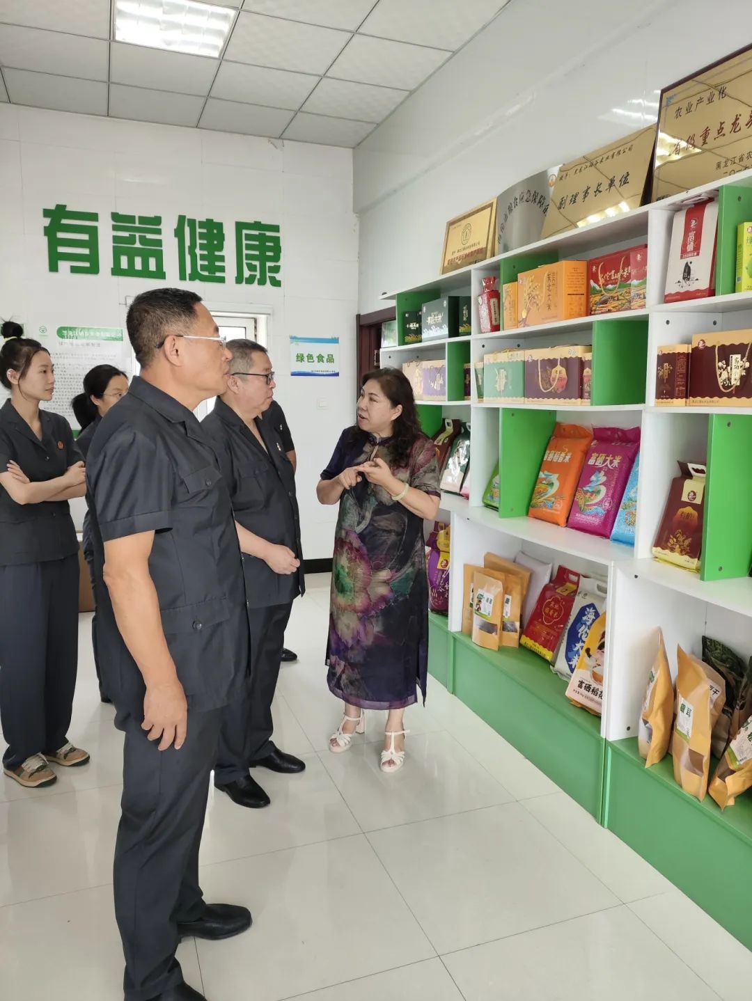 揭牌儀式后,法院工作人員深入企業(yè)生產(chǎn)一線實地調(diào)研。在整潔敞亮的產(chǎn)品展示廳內(nèi),墻面“硒稻谷、有機香米、有益健康”的綠色標(biāo)語,彰顯企業(yè)健康理念。民二庭干警詳細(xì)察看了貼有“綠色食品”認(rèn)證標(biāo)志的富硒米產(chǎn)品陳列架,了解“五色谷”品牌的生產(chǎn)標(biāo)準(zhǔn)、市場布局及維權(quán)難點。企業(yè)負(fù)責(zé)人現(xiàn)場介紹產(chǎn)品特色,法官們結(jié)合包裝標(biāo)識、質(zhì)量認(rèn)證等關(guān)鍵環(huán)節(jié),就地理標(biāo)志保護、商標(biāo)規(guī)范使用等法律風(fēng)險與企業(yè)人員深入交流。