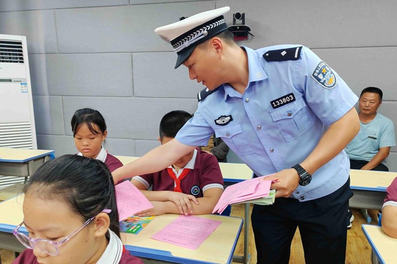 活動(dòng)中,大隊(duì)宣傳民警結(jié)合轄區(qū)交通安全形勢(shì)與學(xué)生日常出行等特點(diǎn),通過(guò)播放安全出行警示教育片、現(xiàn)場(chǎng)講解、發(fā)放宣傳手冊(cè)等形式向同學(xué)們普及交通安全法律法規(guī)知識(shí),以及如何安全乘車(chē)、安全步行、安全騎車(chē)等內(nèi)容,并以互動(dòng)交流的方式為在場(chǎng)學(xué)生們講解交通安全標(biāo)志標(biāo)識(shí),交通出行中不系安全帶、不佩戴安全頭盔、闖紅燈、在馬路上嬉戲打鬧、亂穿馬路或翻越交通隔離護(hù)欄等違法行為的危害性,教育學(xué)生要自覺(jué)遵守道路交通法律法規(guī),騎乘電動(dòng)車(chē)時(shí)應(yīng)佩戴好安全頭盔、乘坐汽車(chē)時(shí)系好安全帶,堅(jiān)決杜絕不文明交通行為和交通陋習(xí),自覺(jué)養(yǎng)成文明交通的良好習(xí)慣,爭(zhēng)做道路交通安全的倡導(dǎo)者、踐行者與宣傳者,真正做到安全文明出行。
