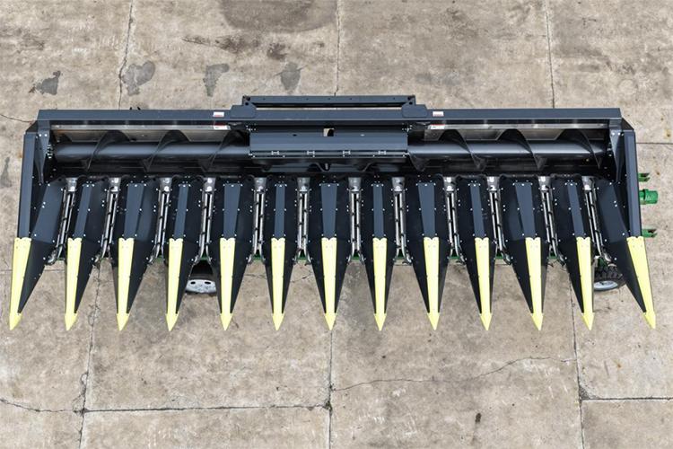 現(xiàn)場會(huì)上,最讓人駐足的是現(xiàn)場展示的意大利卓收割臺(tái), 此次引入的卓收割臺(tái),其自動(dòng)摘穗板每行單元可實(shí)現(xiàn)自動(dòng)開合且?guī)в袦p震功能,能根據(jù)玉米粗細(xì)靈活調(diào)節(jié)間隙,有效解決了其他品牌割臺(tái)無法對每行每株精準(zhǔn)適配的問題;同時(shí),收割臺(tái)的拉莖輥長度較其他品牌割臺(tái)增加 8 公分,讓割臺(tái)更貼合地面,在收獲倒伏玉米時(shí)作業(yè)角度更優(yōu),大幅減少 “跳棒” 現(xiàn)象。此外,卓收割臺(tái)的拉莖輥及刀片采用螺栓固定設(shè)計(jì),可隨時(shí)調(diào)整位置或更換部件,避免了其他割臺(tái)因拉莖輥及刀片為一體式設(shè)計(jì)、損壞后需整體更換的弊端。