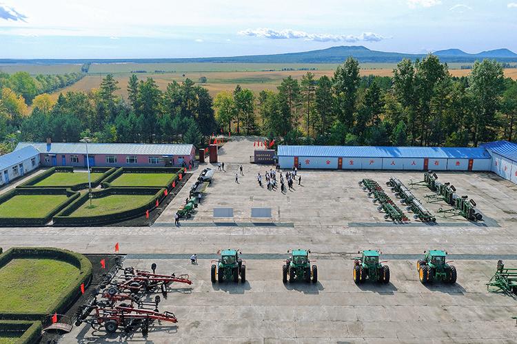 引龍河農(nóng)場構(gòu)建了完善的農(nóng)機(jī)存放與裝備體系,設(shè)有一類農(nóng)機(jī)停放場 7 處、二類停放場 7 處、臨時(shí)停放場 5 處,總面積 10.8 萬平方米,可充分滿足農(nóng)機(jī)存放需求。全場農(nóng)機(jī)總動(dòng)力達(dá) 4.18 萬千瓦,155 臺(tái)動(dòng)力機(jī)車覆蓋“耕、種、管、收”全環(huán)節(jié),485 臺(tái)(套)農(nóng)機(jī)具嚴(yán)格落實(shí)“五凈、四不漏、六封閉、一完好”管護(hù)標(biāo)準(zhǔn)。