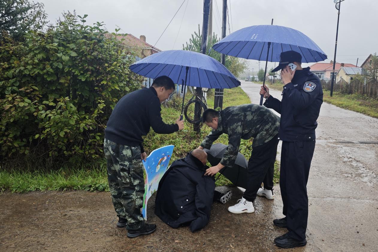 到達(dá)現(xiàn)場(chǎng)后,民警發(fā)現(xiàn)老人面部有明顯擦傷,腿部無(wú)法活動(dòng)。為避免隨意移動(dòng)造成二次傷害,民警第一時(shí)間找來(lái)雨傘和棉襖,一邊撐傘為老人遮擋風(fēng)雨,一邊用棉襖裹住老人身體保暖。同時(shí),民警迅速聯(lián)系老人家屬,并撥打120急救電話,家屬表示希望將老人送往縣里醫(yī)院治療。民警又緊急協(xié)調(diào)縣里的救護(hù)車,在等待期間,民警一直撐著傘守護(hù)老人,并與老人輕聲交談,耐心安撫老人情緒,緩解其緊張與疼痛。