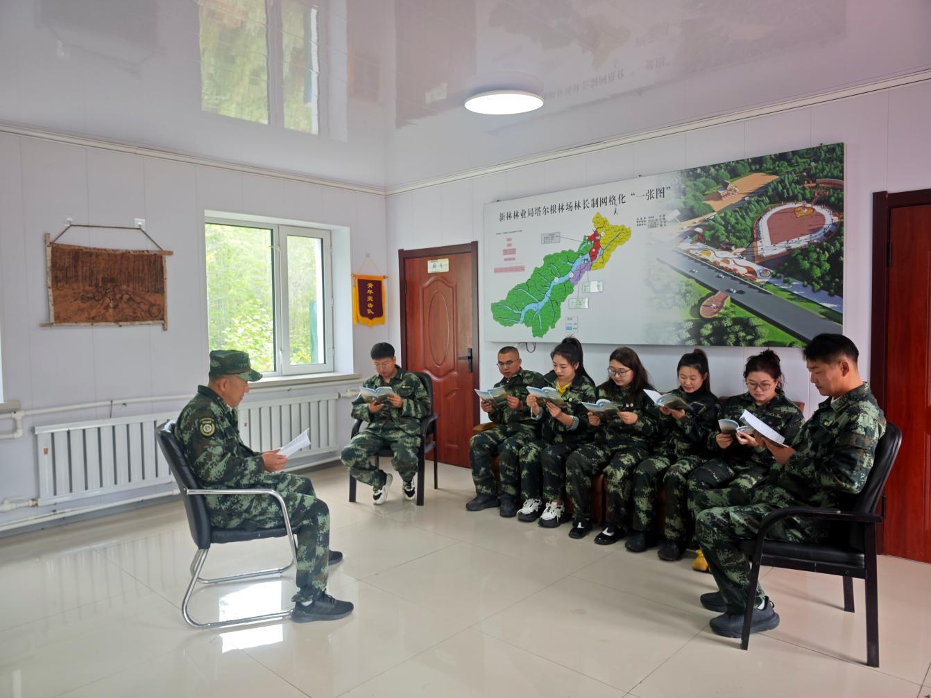 林場職工在管護(hù)站“讀書角”進(jìn)行理論學(xué)習(xí)(蒿夢琪 攝)