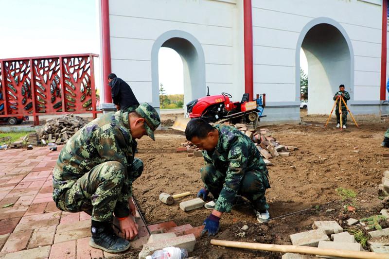 阿木爾林業(yè)局專(zhuān)業(yè)撲火隊(duì)員正在維修改造北極植物園附屬基礎(chǔ)設(shè)施(王力 攝)