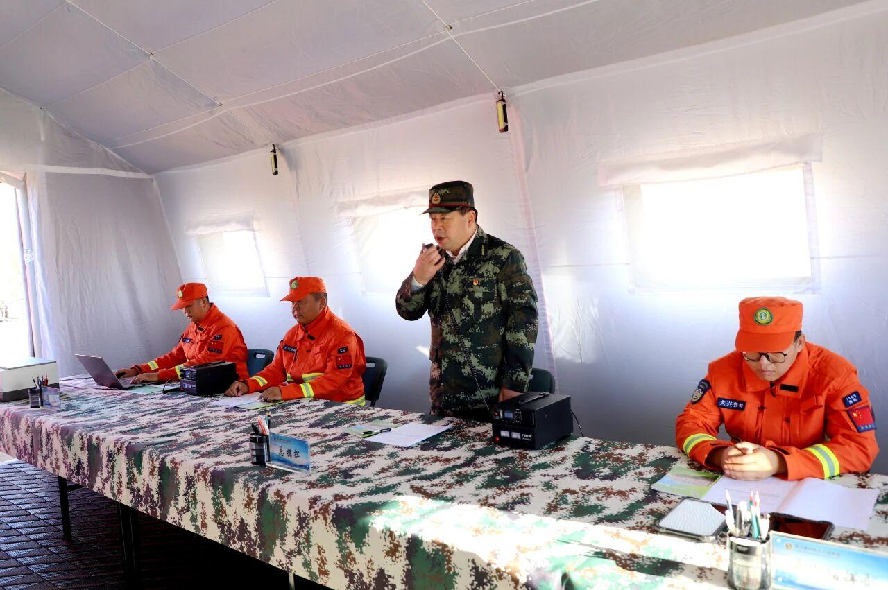 14時(shí)30分許,塔防指總指揮齊毅在指揮席位舉起對講機(jī)下達(dá)“開始”指令,野外實(shí)戰(zhàn)化演練正式啟動(dòng)。14時(shí)31分,492瞭望塔、516瞭望塔瞭望員先后發(fā)現(xiàn)塔林林場3支線83林班出現(xiàn)白色煙柱,立即上報(bào)火情。接到報(bào)告后,基地指揮中心調(diào)度員快速圖上作業(yè)鎖定火場位置;塔防指專職指揮聞?dòng)庐?dāng)即啟動(dòng)應(yīng)急預(yù)案,指令多支隊(duì)伍緊急集結(jié),塔林、繡峰、瓦拉干三個(gè)林場各派出25人森防專業(yè)隊(duì)先行出發(fā),局屬森防專業(yè)隊(duì)135人攜全地形運(yùn)兵車、消防水罐車等裝備跟進(jìn),索滑降中隊(duì)15人同步趕赴塔航站。
