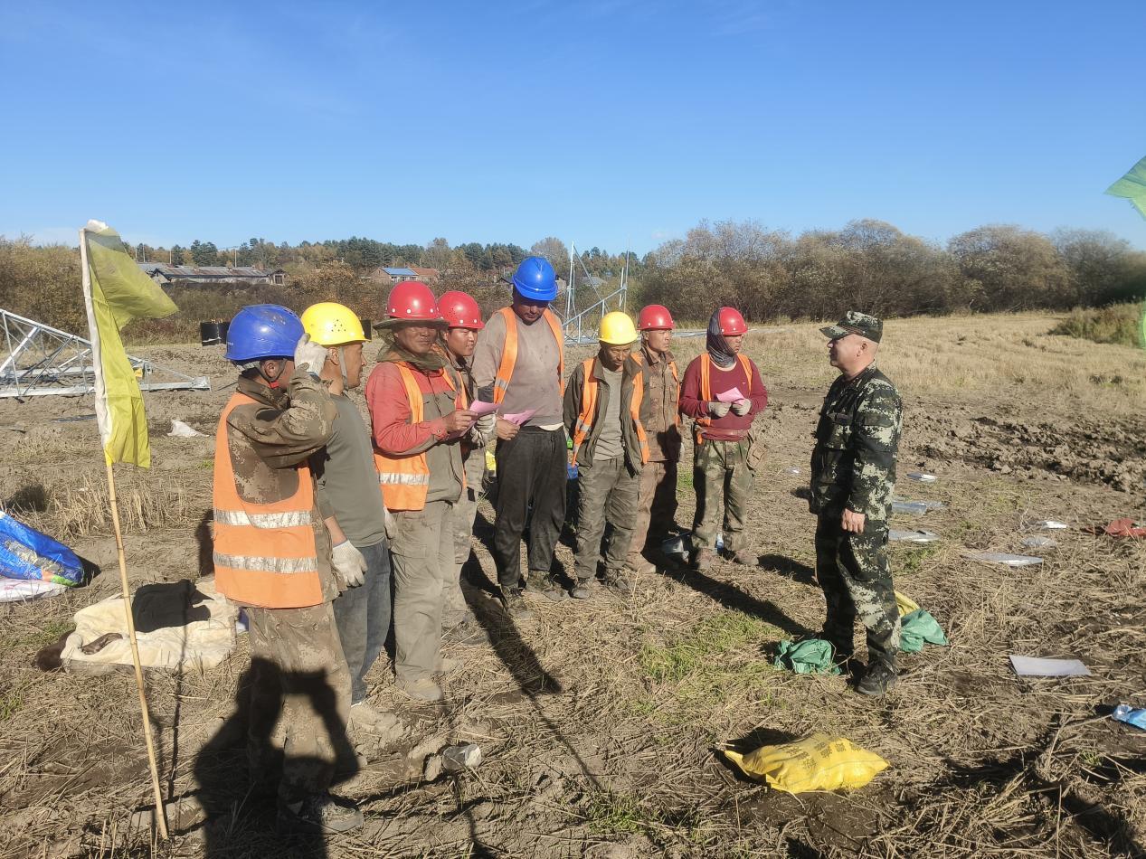 督導(dǎo)組檢查野外作業(yè)監(jiān)管情況并對(duì)施工人員面對(duì)面講解防火法規(guī)(孟鵬翔 攝)