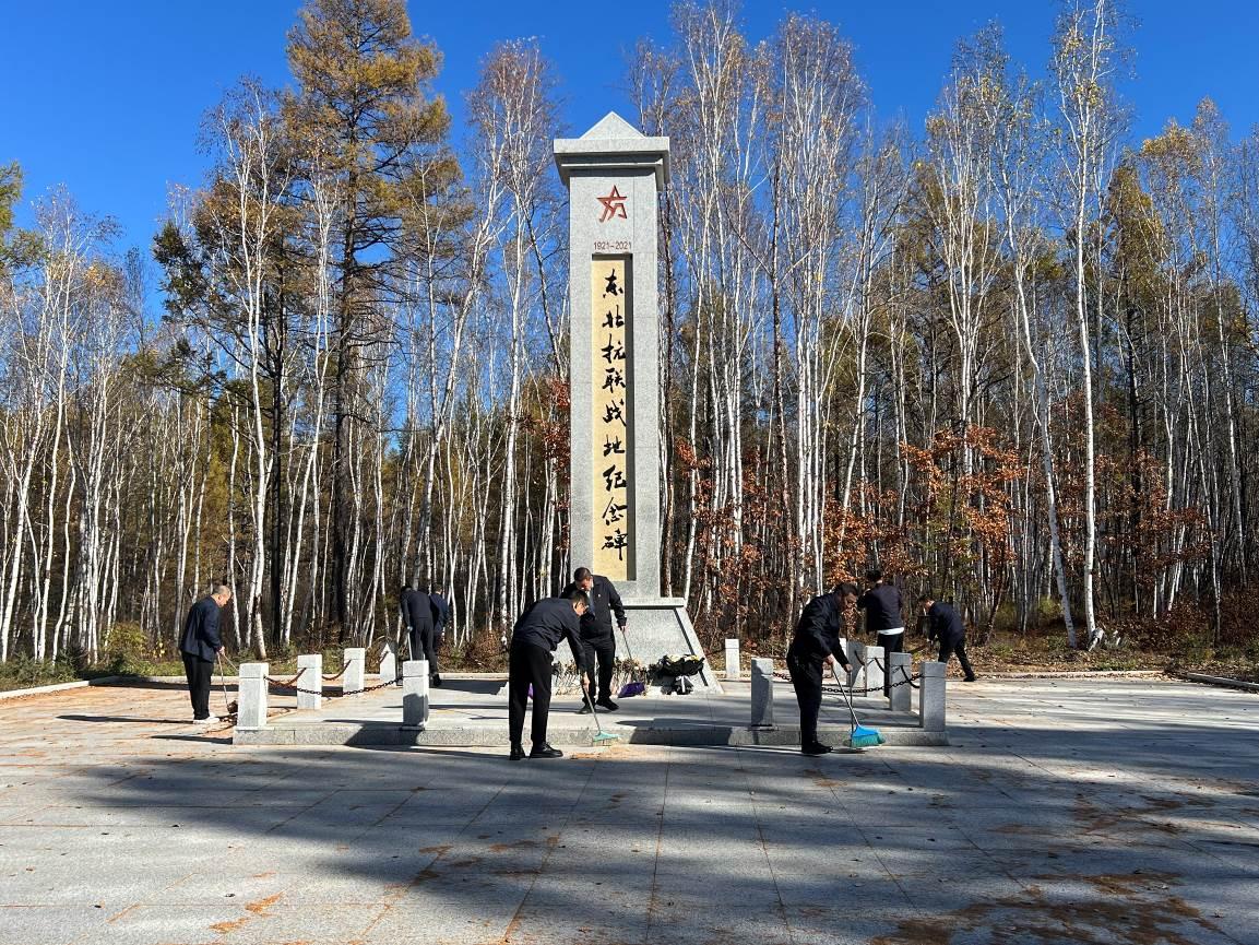 9時(shí)40分,全體參與人員乘車前往革命烈士紀(jì)念碑墓地,開啟致敬英烈活動(dòng)?;顒?dòng)現(xiàn)場(chǎng),全體人員手持清掃工具,認(rèn)真清理紀(jì)念碑周圍的落葉與雜草,以實(shí)際行動(dòng)表達(dá)對(duì)革命先烈的緬懷與敬意。