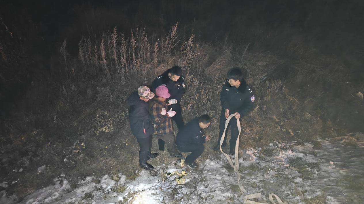 據(jù)了解,當(dāng)時(shí)呼瑪縣公安局興華派出所民輔警正對(duì)轄區(qū)開(kāi)展常態(tài)化巡查,發(fā)現(xiàn)一位群眾在路邊攔住警車(chē),民輔警立即停車(chē)查看情況。詢(xún)問(wèn)得知,該群眾的妻子乘坐電動(dòng)輪椅時(shí)由于天黑路滑不慎駛進(jìn)了深溝,因其妻子年過(guò)六旬身體殘疾且行動(dòng)不便,墜入深溝摔倒后無(wú)法起身,恰好此時(shí)看到巡邏的警車(chē),便立刻攔車(chē)尋求幫助。
