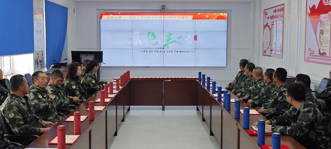 活動伊始,全場靜謐,紀念大興安嶺開發(fā)建設60周年專題片《綠色豐碑》緩緩開播。
