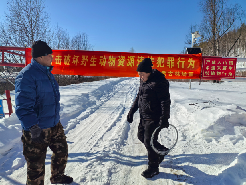 針對冬季盜獵高發(fā)特點,林場組織資源管護人員重點對施業(yè)區(qū)內野生動物活躍區(qū)、林緣地帶、溝系河道等易安放捕獵具區(qū)域進行反復排查。工作人員憑借豐富經(jīng)驗與敏銳觀察力,細致搜尋并清理雪下、灌木叢中隱匿的獵夾、獵套、粘網(wǎng)等非法器具,從源頭消除安全隱患,堅決遏制亂捕濫獵違法行為。