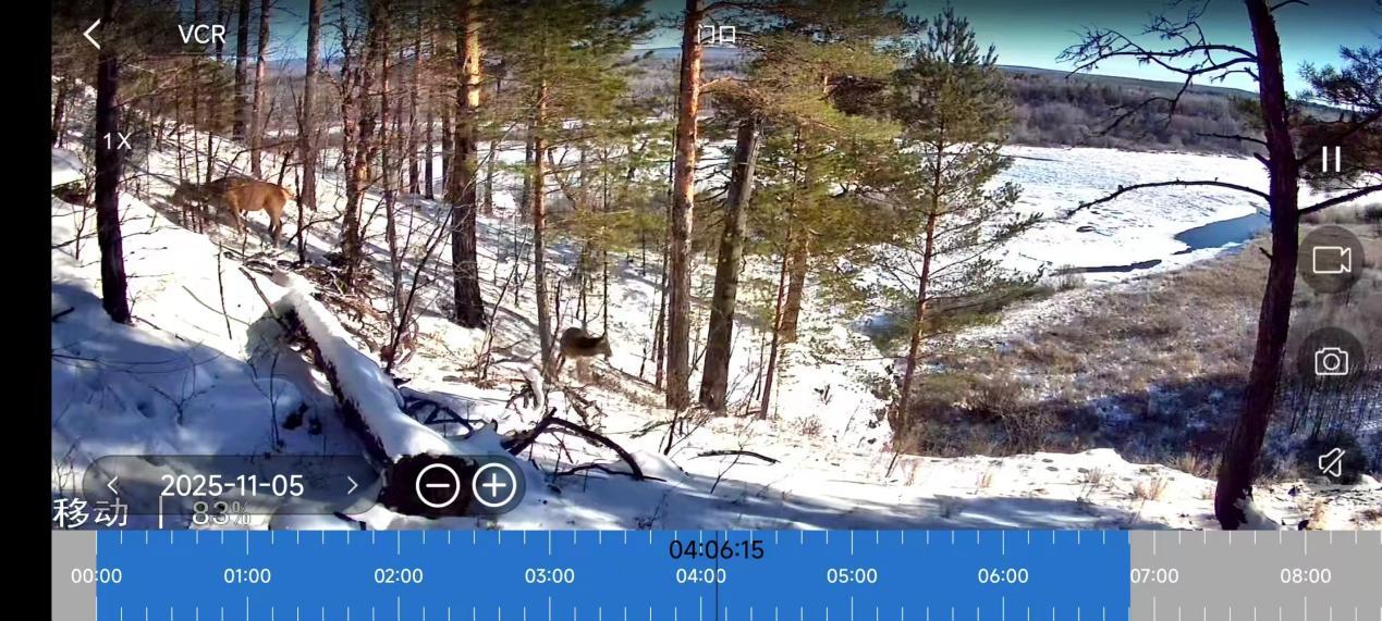 監(jiān)控畫面中,狍子時而低頭啃食積雪下的草本植物與木本嫩枝,時而抬頭警覺張望,盡顯食草動物的溫順靈動。猞猁則步伐穩(wěn)健,目光銳利卻不張揚,構(gòu)成了一幅難得的野生動物同框畫卷。作為東北林區(qū)常見的野生動物,狍子能耐受-60℃的嚴寒,而猞猁的出現(xiàn),更印證了當?shù)厣鷳B(tài)系統(tǒng)的完整性。
