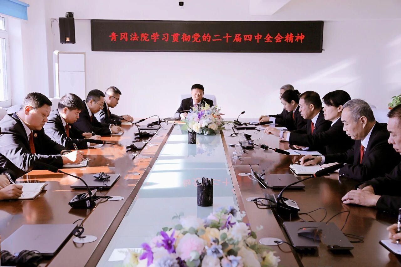 會議強(qiáng)調(diào),要錨定政治引領(lǐng),在鑄牢忠誠之魂上抓落實(shí)。要深化理論武裝、強(qiáng)化政治忠誠、壓實(shí)政治責(zé)任。黨組成員要帶頭把學(xué)習(xí)貫徹全會精神作為當(dāng)前和今后一個時期的重大政治任務(wù),建立黨組領(lǐng)學(xué)、支部研學(xué)、干警自學(xué)的三級學(xué)習(xí)機(jī)制。通過專題研討、輔導(dǎo)講座、案例教學(xué)等形式,深入學(xué)習(xí)習(xí)近平總書記重要講話精神和全會規(guī)劃建議原文,準(zhǔn)確領(lǐng)會“六個堅(jiān)持”重要原則,深刻領(lǐng)悟“兩個確立”的決定性意義,增強(qiáng)“四個意識”、堅(jiān)定“四個自信”、做到“兩個維護(hù)”。要聚焦中心大局,在精準(zhǔn)服務(wù)保障上抓落實(shí)。要護(hù)航高質(zhì)量發(fā)展、保障科技自立自強(qiáng)、守護(hù)生態(tài)環(huán)境安全、筑牢國家安全屏障。完整、準(zhǔn)確、全面貫徹新發(fā)展理念,依法審理涉市場經(jīng)濟(jì)案件,著力破除阻礙統(tǒng)一大市場卡點(diǎn)堵點(diǎn),維護(hù)良性競爭秩序、助力市場資源高效配置。妥善審理涉創(chuàng)新創(chuàng)造案件,為科技創(chuàng)新和產(chǎn)業(yè)融合提供法治保障。深入踐行“兩山”理念,依法審理環(huán)境資源案件,以最嚴(yán)格制度和最嚴(yán)密的法治守護(hù)青岡綠水青山。貫徹總體國家安全觀,依法嚴(yán)懲各類刑事犯罪,常態(tài)化開展掃黑除惡,維護(hù)社會大局持續(xù)穩(wěn)定。