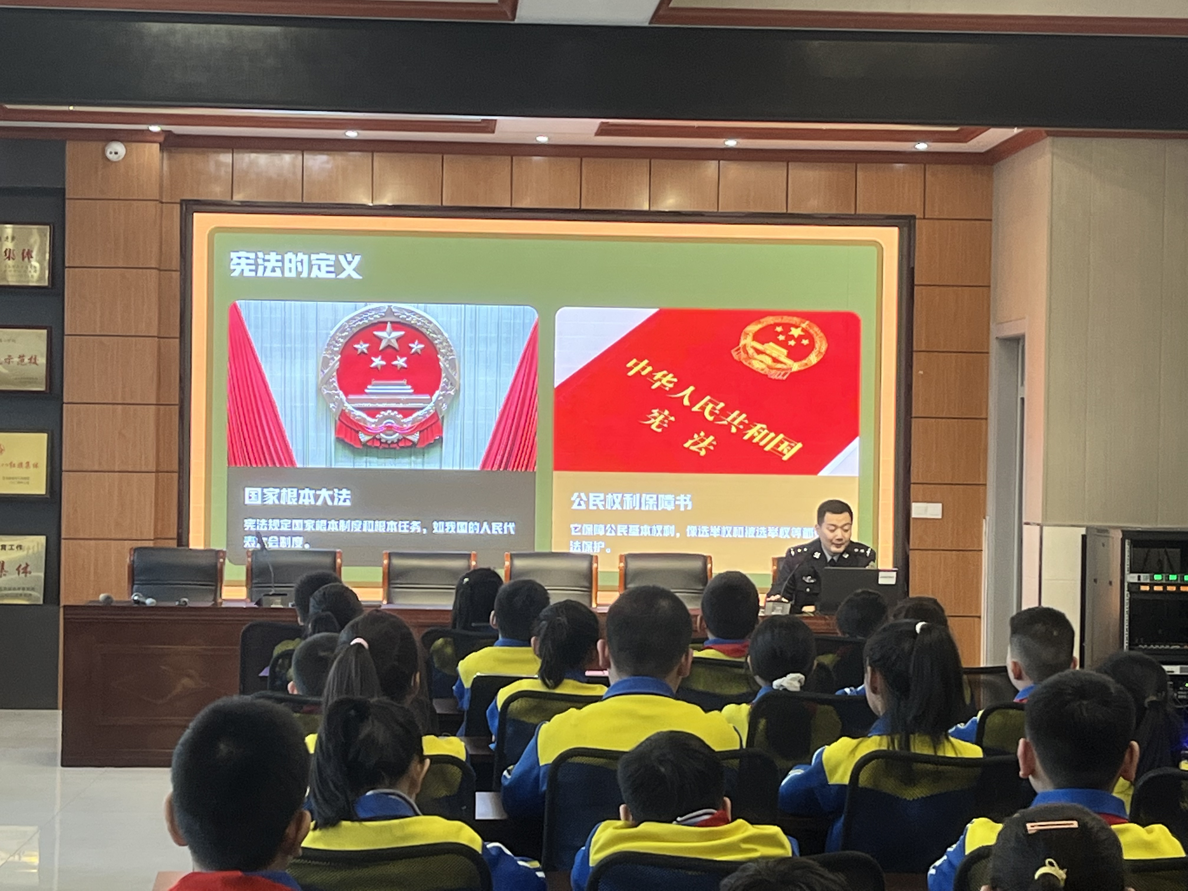 講座中,民警以通俗生動(dòng)的語言,圍繞三大核心內(nèi)容展開宣講:一是憲法基礎(chǔ)認(rèn)知,重點(diǎn)闡釋憲法作為國家根本大法的地位與作用,結(jié)合受教育權(quán)、人身安全保障、遵守校園規(guī)則等小學(xué)生熟悉的生活場景,讓學(xué)生真切感受到憲法并非“遙遠(yuǎn)的法律”,而是與自身息息相關(guān)的行為準(zhǔn)則;二是權(quán)利與義務(wù)對應(yīng),明確小學(xué)生依法享有的受教育權(quán)、人格尊嚴(yán)不受侵犯等合法權(quán)利,同時(shí)詳細(xì)講解遵守憲法法律、尊敬師長、維護(hù)公共秩序等必須履行的義務(wù),引導(dǎo)學(xué)生樹立“權(quán)利有邊界,義務(wù)須履行”的法治觀念;三是校園法治安全,針對校園欺凌、交通安全、網(wǎng)絡(luò)安全、防范陌生人侵害等問題,民警結(jié)合憲法及相關(guān)法律對未成年人的保護(hù)規(guī)定,傳授簡單實(shí)用的自我保護(hù)方法和求助途徑,著重強(qiáng)調(diào)遇到危險(xiǎn)時(shí)可及時(shí)撥打110報(bào)警電話或告知老師、家長。