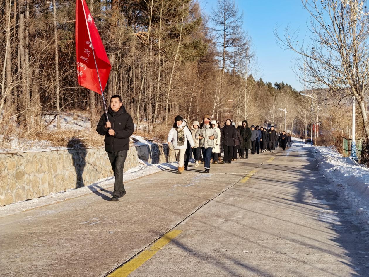 活動中,150余名林業(yè)局機關(guān)干部職工在原林園門前集結(jié)。隨著出發(fā)指令下達(dá),徒步隊伍沿著預(yù)設(shè)路線有序前行,有經(jīng)驗豐富的職工帶頭穩(wěn)步前行,不時提醒身旁同事注意腳下安全。年輕干部們活力滿滿,時而相互鼓勁,時而駐足欣賞沿途銀裝素裹的冬日盛景,盡管天氣寒冷,但絲毫未影響大家的參與熱情。經(jīng)過兩個小時的徒步,大家攜手并進(jìn)順利抵達(dá)終點。