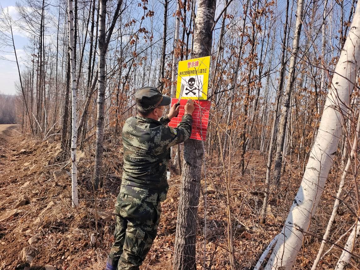 林場工作人員在設(shè)置警示標(biāo)牌(張春義 攝)