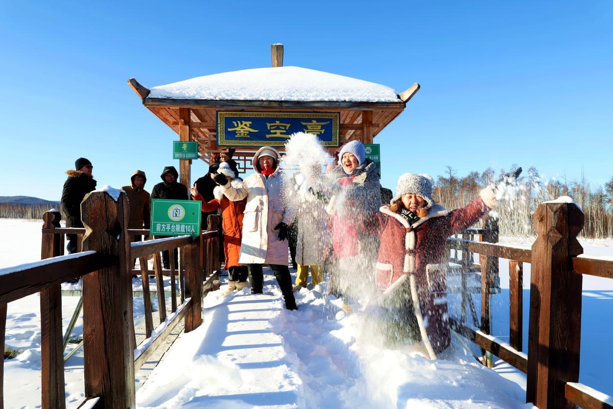 黑龍江省詩詞協(xié)會采風(fēng)團(tuán)成員在雙妃湖親身感受冰雪文化和驛站文化(王力 攝)