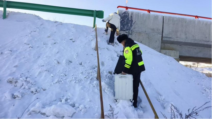 接警后,呼瑪縣公安局民輔警立即攜帶防滑鏈、鐵鏟、繩索等救援工具趕往現(xiàn)場(chǎng)。抵達(dá)現(xiàn)場(chǎng)后,民警第一時(shí)間查看被困人員安全并安撫游客情緒,發(fā)現(xiàn)駕駛員被主駕駛的玻璃劃傷后與游客迅速商量先“棄車就醫(yī)”。