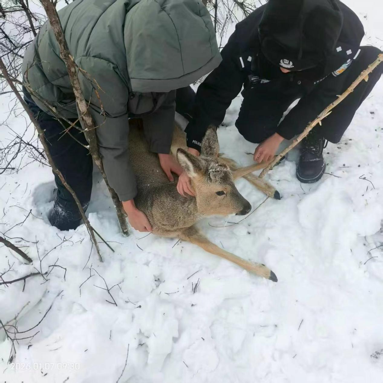 聯合巡護小組深入縣域重點野外區(qū)域,對野生動物頻繁活動的林區(qū)及重點生態(tài)功能區(qū)進行排查。其間,小組發(fā)現一只疑似受傷的狍子,經檢查確認其體表無明顯外傷、精神狀態(tài)良好。工作人員對其進行短暫觀察后撤離,讓狍子重返野外棲息地。