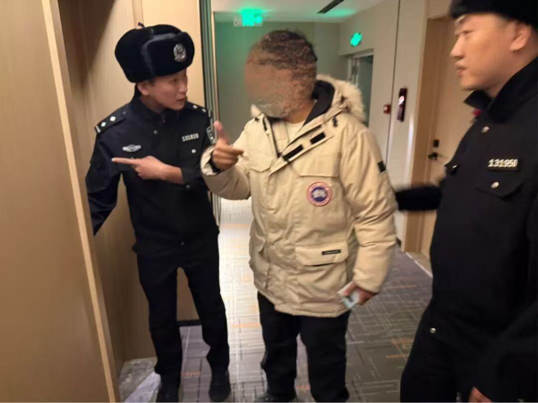 當(dāng)日凌晨,一名外籍男士來到五大連池市公安局青山派出所求助。民警發(fā)現(xiàn)其處于醉酒狀態(tài),言語(yǔ)含糊。雙方因語(yǔ)言不通無法順暢溝通,為弄清情況,民警先引導(dǎo)男子出示護(hù)照,核實(shí)其為突尼斯籍來此旅游的游客。隨后,男子通過手機(jī)翻譯軟件結(jié)合手勢(shì),大致描繪出其核心訴求:當(dāng)晚用餐后,因醉酒迷失方向,無法找到入住的酒店,深夜身處陌生環(huán)境,只好向警方求助。民警一邊通過翻譯軟件耐心安撫其情緒,一邊根據(jù)他模糊描述的酒店相關(guān)特征快速核查,很快鎖定具體位置??紤]到游客醉酒且不熟悉路線,為保障其安全,民警驅(qū)車將其平穩(wěn)送至酒店。