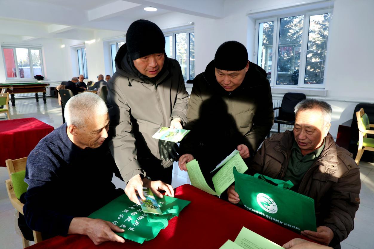 阿木爾林業(yè)局聯(lián)合宣傳小組成員向居民普及濕地保護知識,提升居民保護濕地意識(王力 攝)