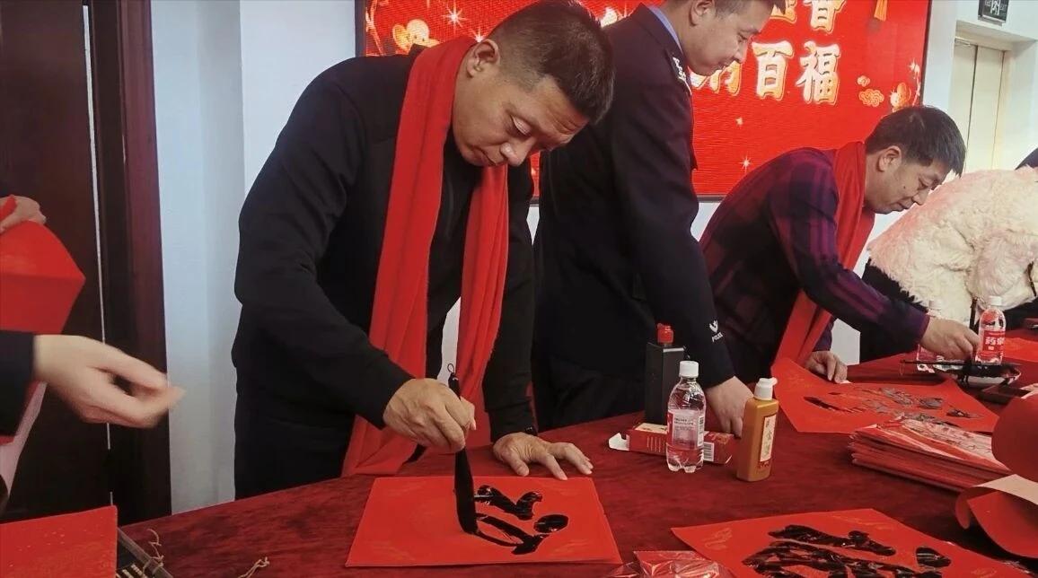 局政委王秀東出席活動儀式并致辭,政工室主任劉鐵主持活動,市書法家協(xié)會名家與該局書法愛好者齊聚一堂,為堅守崗位的民輔警送上新春祝福與文化滋養(yǎng)?;顒蝇F(xiàn)場暖意融融、墨香四溢。大紅宣紙整齊鋪展,筆墨硯臺依次排開,書法家們凝神聚力、揮毫潑墨,筆鋒或遒勁有力、或溫婉流暢。一副副寓意深遠(yuǎn)的春聯(lián)躍然紙上,一個個飽滿圓潤的“福”字承載著美好期許,既彰顯了中華傳統(tǒng)文化的魅力,又融入了公安工作的使命擔(dān)當(dāng)。