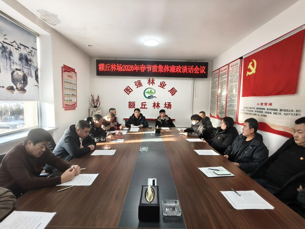 廉政談話明底線,承諾踐諾守初心。額丘林場召開春節(jié)前集體廉政談話會,專題傳達學習上級關(guān)于春節(jié)期間廉潔過節(jié)的通知要求,原文解讀相關(guān)通知精神與紀律規(guī)定,確保全體黨員干部精準把握節(jié)日廉潔核心要義。會議結(jié)合關(guān)鍵崗位風險特點,聚焦違規(guī)收送禮品禮金、違規(guī)吃喝等易發(fā)“節(jié)日病”,明確禁止性要求,督促黨員干部繃緊紀律之弦。談話會后,組織全體黨員簽訂《春節(jié)期間廉潔自律承諾書》,承諾書緊扣上級要求梳理8項核心準則,從遵守中央八項規(guī)定精神到杜絕違規(guī)操辦婚喪喜慶事宜,逐條細化規(guī)范,推動廉潔要求內(nèi)化于心、外化于行。
