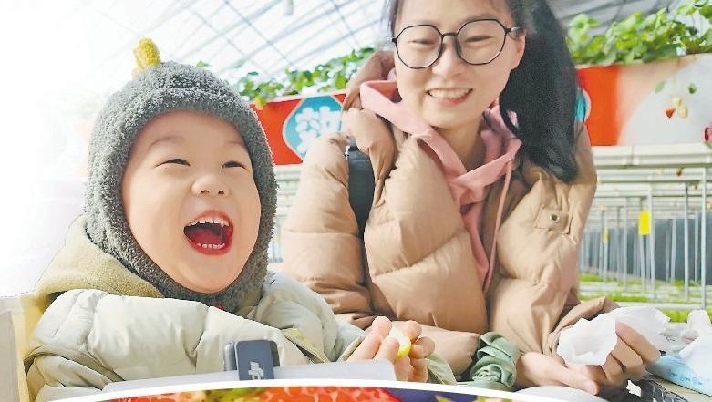“草莓英語怎么說呀?”“Strawberry?!薄巴郏葺嫣?。”臨近春節(jié),寒意猶在,位于哈爾濱市阿城區(qū)的北大荒集團(tuán)阿城農(nóng)場溫室大棚中清脆的童音不斷,暖意融融。