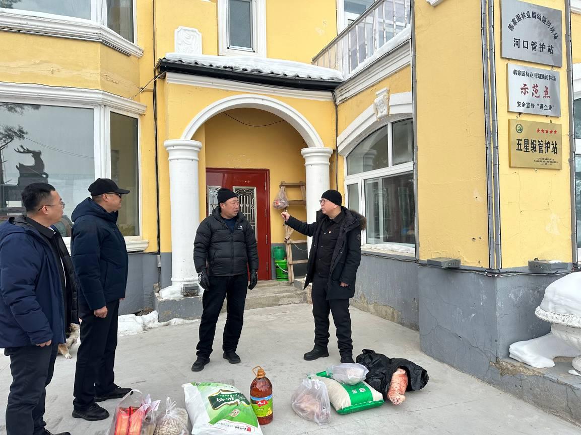 在各管護站,慰問組為一線管護人員送上了米、面、油等生活物資和對聯(lián)、鞭炮等春節(jié)物品,對管護人員常年扎根深山、不畏嚴寒、堅守一線的精神給予高度肯定。同時結合春節(jié)期間工作特點提出具體要求。一是全體一線管護人員要時刻緊繃安全防護之弦,嚴格落實24小時值班值守制度,加密重點區(qū)域、關鍵時段的巡護頻次。二是要筑牢防火防盜防線,春節(jié)期間要高度重視用火、用電安全,規(guī)范燒煤取暖行為,嚴防火災、煤氣中毒等安全事故發(fā)生;三是要做好自身防寒保暖與安全防護,合理安排輪休值守,確保節(jié)日期間各項工作平穩(wěn)有序。四是嚴守交通安全,冰雪天氣出行謹慎駕駛,杜絕酒駕醉駕,確保平安過節(jié)。