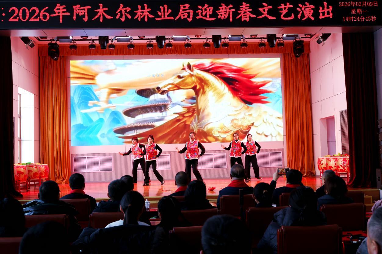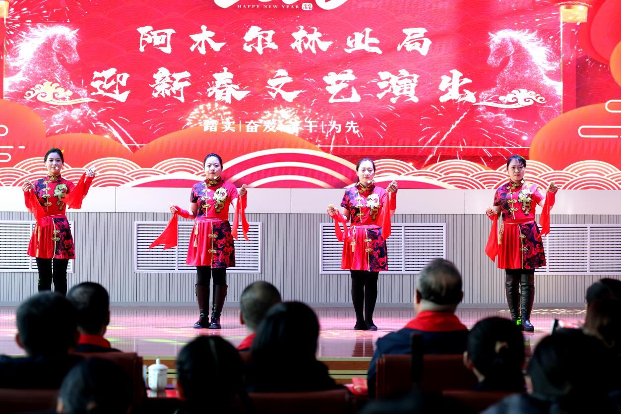 演出伊始,林業(yè)局黨委負(fù)責(zé)人王飛發(fā)表熱情洋溢的致辭,向全體職工及家屬致以新春祝福與誠摯問候。伴隨著躍馬揚(yáng)鞭、震撼人心的鼓舞《賽馬》,整場演出正式拉開帷幕。 歌曲獨(dú)唱、聯(lián)唱飽含深情,《我從草原來》《越往北越美》《逐夢前行》等曲目,唱出林區(qū)人質(zhì)樸赤誠的家國情懷,抒發(fā)熱愛故土、勇毅擔(dān)當(dāng)?shù)恼鎿辞楦小?/p>
