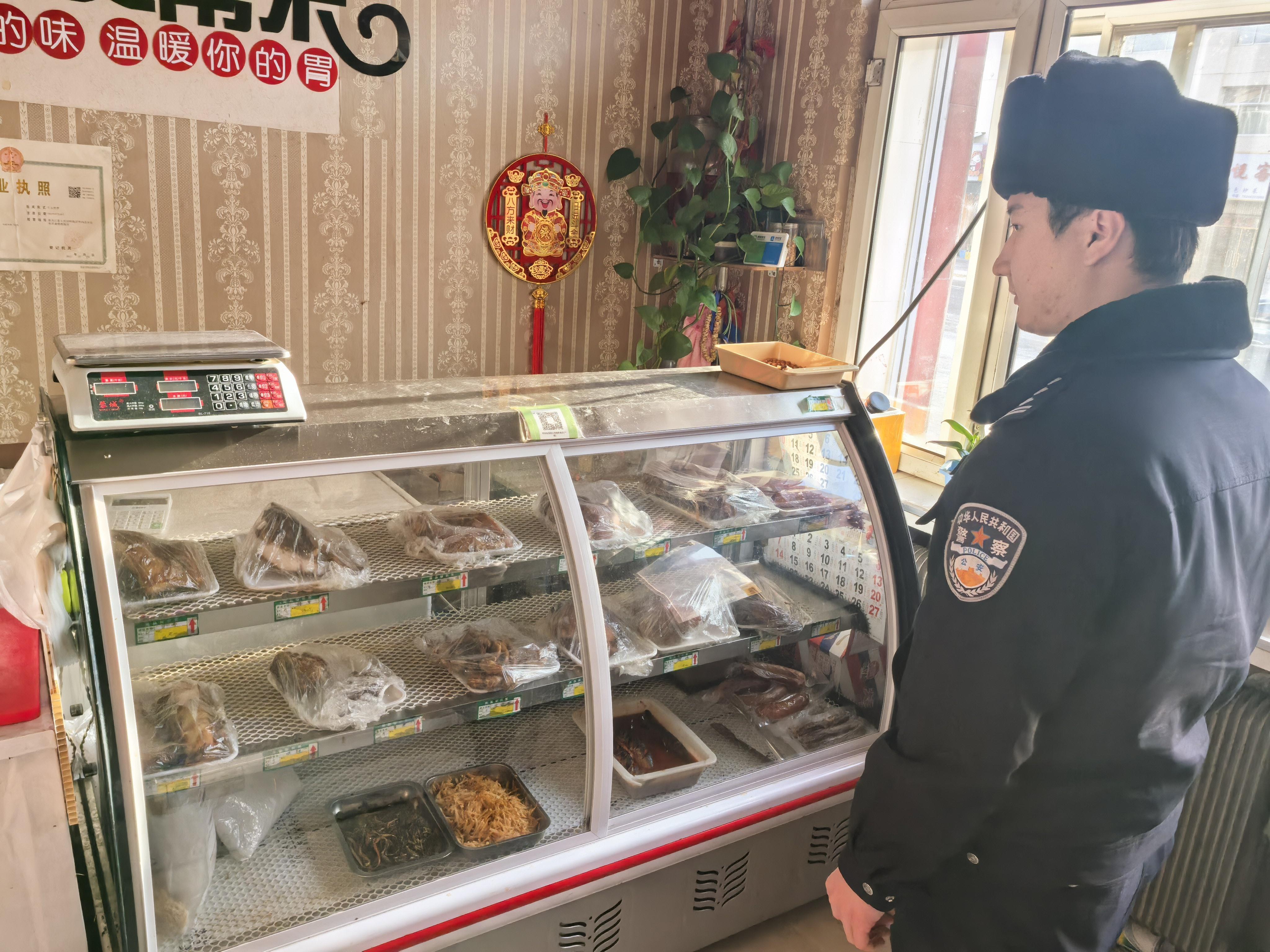 民輔警結(jié)合節(jié)前市場(chǎng)特點(diǎn),采取“明察暗訪+隨機(jī)抽檢”方式,對(duì)轄區(qū)肉制品經(jīng)營(yíng)店鋪開展全面排查?,F(xiàn)場(chǎng)檢查中,發(fā)現(xiàn)1家店鋪環(huán)境衛(wèi)生不達(dá)標(biāo),執(zhí)法民警當(dāng)即責(zé)令其現(xiàn)場(chǎng)整改。