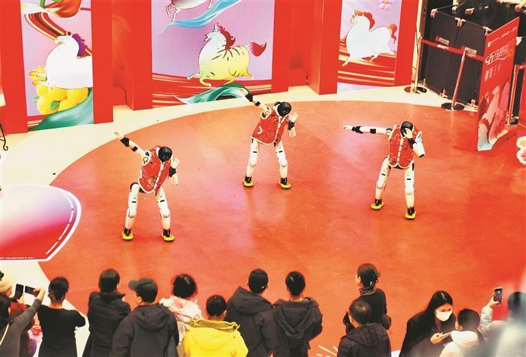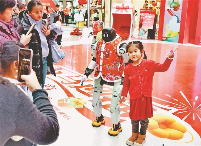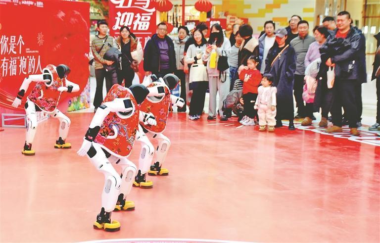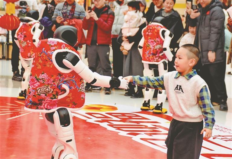 19日,正月初三。哈爾濱市道里區(qū)一家大型商場舉行了機器人舞蹈表演,吸引許多市民游客駐足觀看。走進場地的三個機器人身高1.5米左右,穿著紅色棉坎肩,十分喜慶。在音樂伴奏下,它們翩翩起舞,動作整齊劃一。表演結(jié)束后,機器人走進人群,與大家握手、合影、互動。春節(jié)假期,哈爾濱市多家商場都推出了機器人表演,讓市民游客與最新科技來個親密接觸。