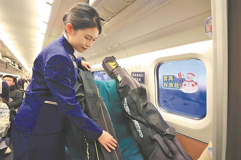 實(shí)行雪具便利行服務(wù),雪具在動(dòng)車(chē)組上也有了專屬“座位”。徐率攝
