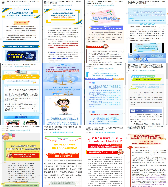為全面貫徹落實(shí)中央經(jīng)濟(jì)工作會議、中央金融工作會議精神,深刻把握金融工作政治性、人民性,助力提升社會公眾金融素養(yǎng),幫助社會公眾增強(qiáng)維護(hù)自身合法權(quán)益的意識和能力。合眾人壽黑龍江分公司按照監(jiān)管部門及總公司有關(guān)工作要求,組織所轄各單位同步全面落實(shí)開展2026年“3·15”金融消費(fèi)者權(quán)益保護(hù)教育宣傳活動。