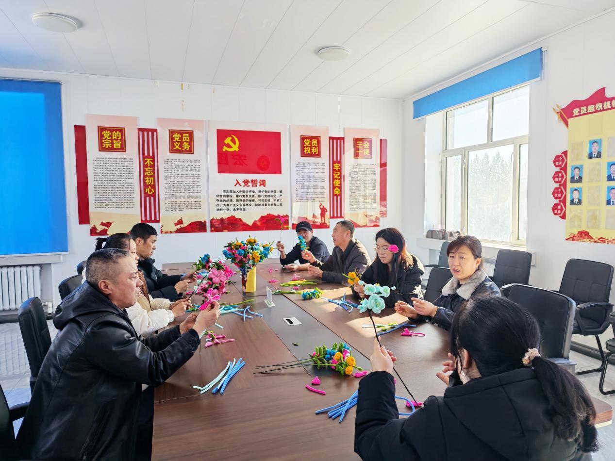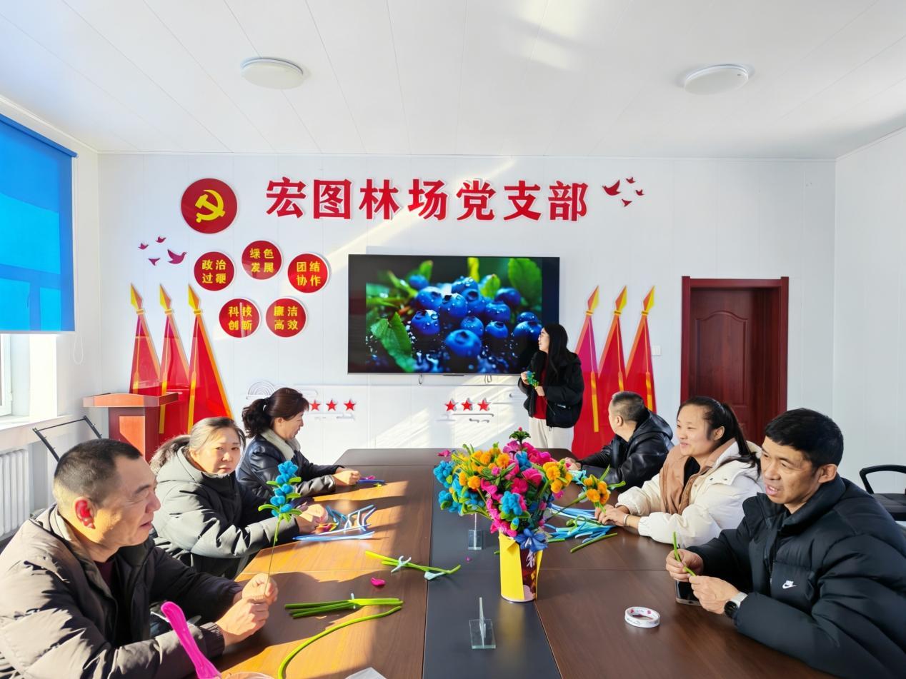 活動現(xiàn)場,大家認真聆聽專業(yè)人員講解野生興安杜鵑、野生藍莓等本土植物保護的相關知識。隨后,通過觀看教學視頻系統(tǒng)地學習扭扭棒基礎造型技巧,在動手實踐中加深對野生植物的保護與認知。實操環(huán)節(jié),職工們圍坐一堂、相互切磋,指尖翻飛間,一根根彩色扭扭棒被巧妙彎折、組合,化作栩栩如生的野生興安杜鵑、飽滿圓潤的藍莓果束等精美手工作品。作品展示環(huán)節(jié),大家踴躍分享創(chuàng)作靈感、交流制作心得,集體合影定格溫馨瞬間,現(xiàn)場氛圍輕松融洽、其樂融融,充分展現(xiàn)出林場職工昂揚向上、心靈手巧的良好精神風貌。