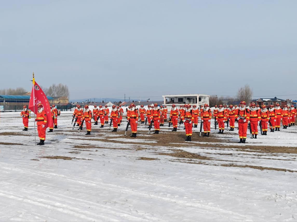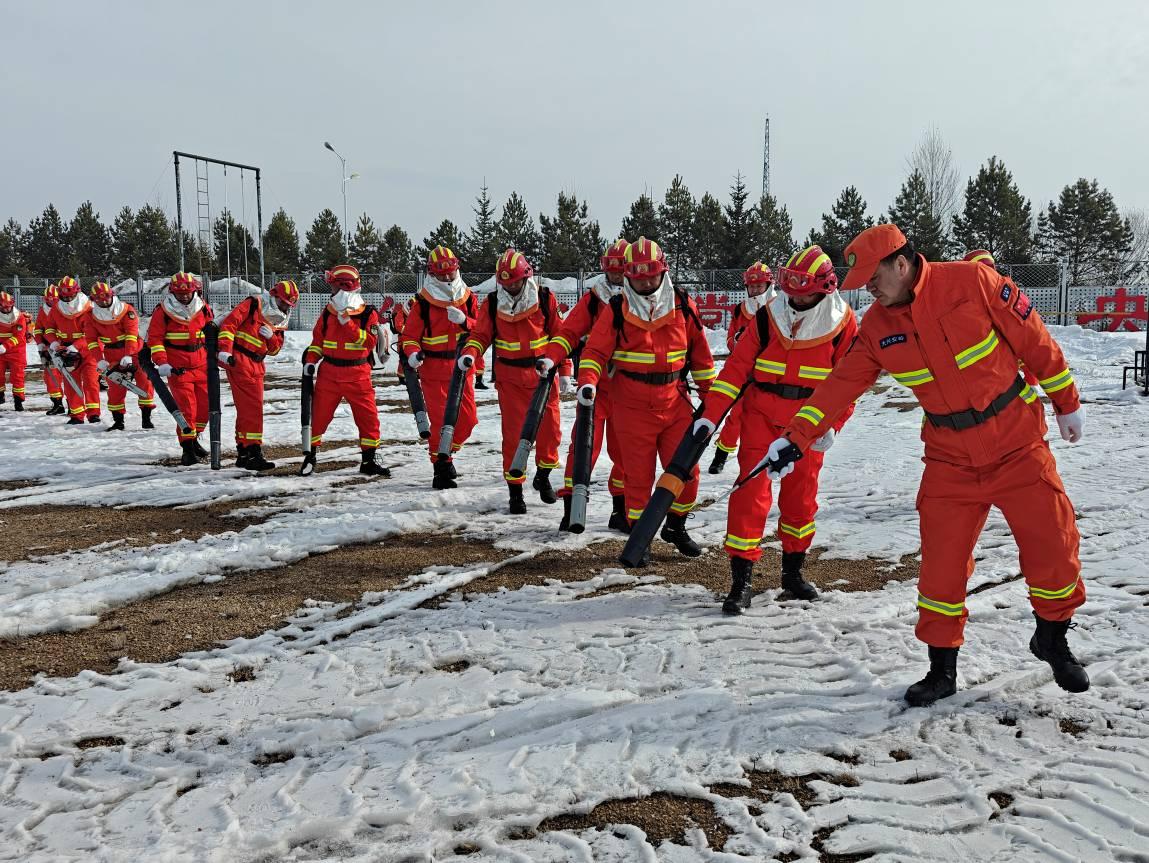 此次演練重點圍繞風(fēng)力滅火機(jī)協(xié)同作戰(zhàn)展開。在接到局森防指發(fā)出指令后,森林消防大隊迅速集結(jié)、整裝出發(fā),全體隊員按照小隊?wèi)?zhàn)術(shù)編組,攜帶機(jī)具對模擬火線進(jìn)行合圍撲打。從集結(jié)到合圍、從協(xié)同到配合,整個過程緊張有序、銜接緊密,橙色身影在白色雪地上格外醒目,展現(xiàn)了專業(yè)隊伍快速響應(yīng)的過硬素質(zhì)和良好的戰(zhàn)備狀態(tài)。
